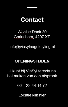 Als kapster zit ik veel met m’n handen in het water. Maar m’n nagels van Syl zitten er na 4 weken gewoon nog netjes op! Er wordt hygiënisch gewerkt en het is altijd gezellig. Ik ben dan ook super tevreden. ViaSyl is een echte aanrader!